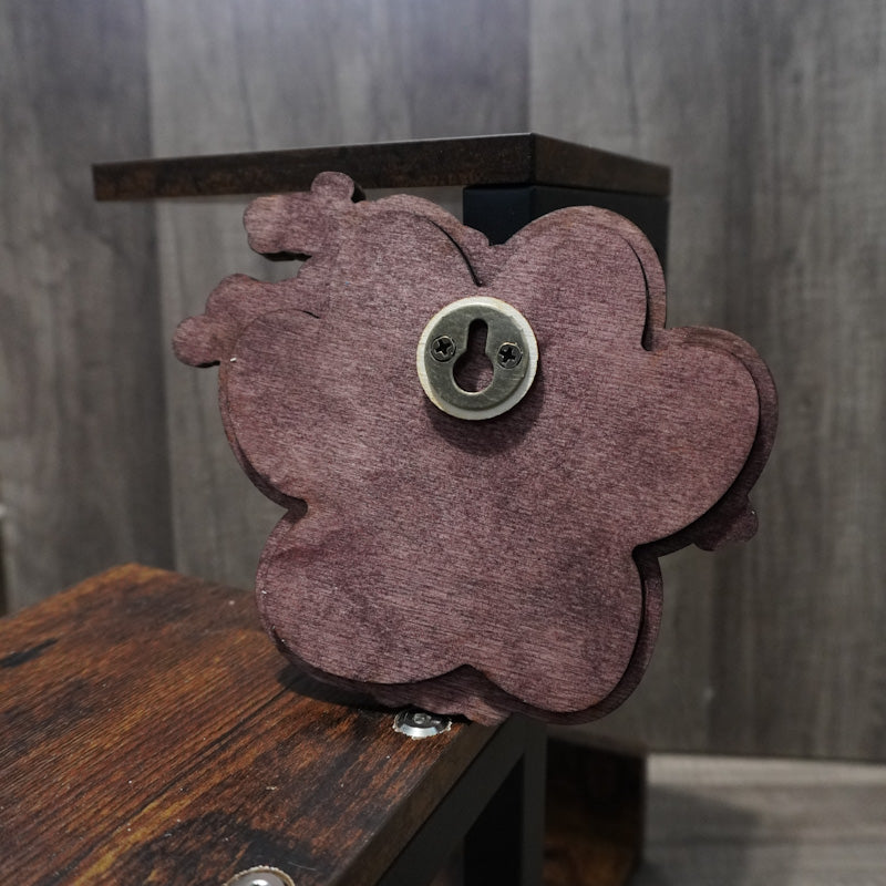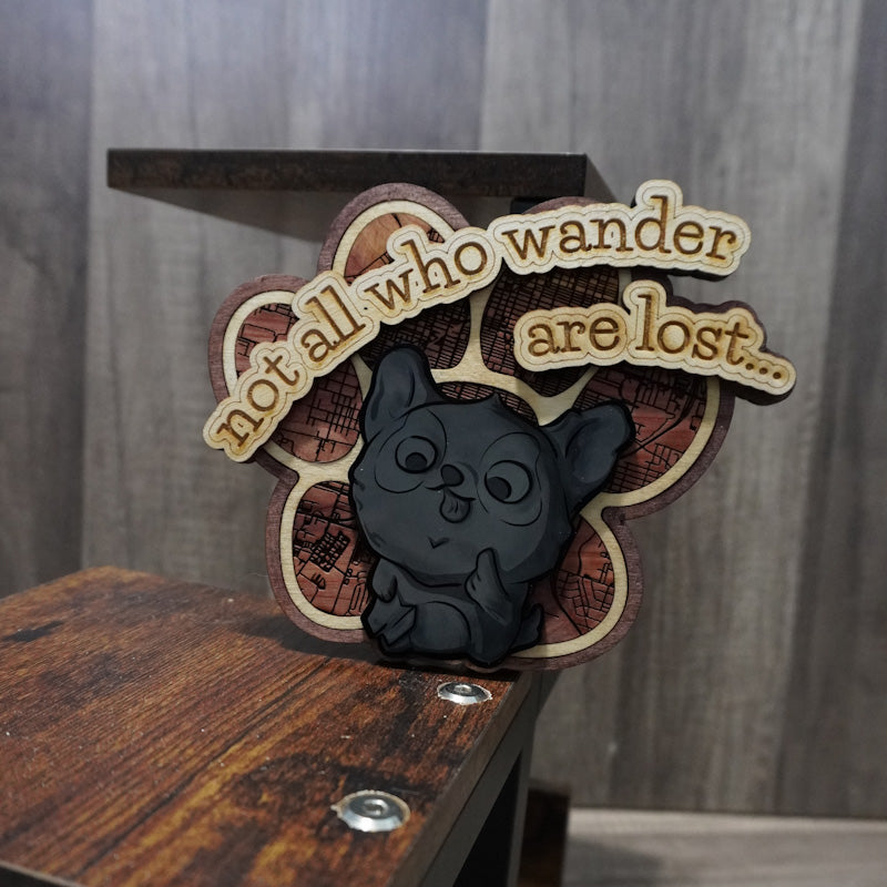 Little chi is made from multiple layers and elements cut from cedar, baltic birch and acrylic. He comes with a convenient keyhole hanger for mounting.