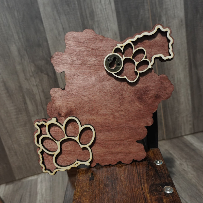 Constructed from various layers of birch and acrylic. Sublimation printed, hand finished, and hand assembled. Fitted with a keyhole hanger for easy installation